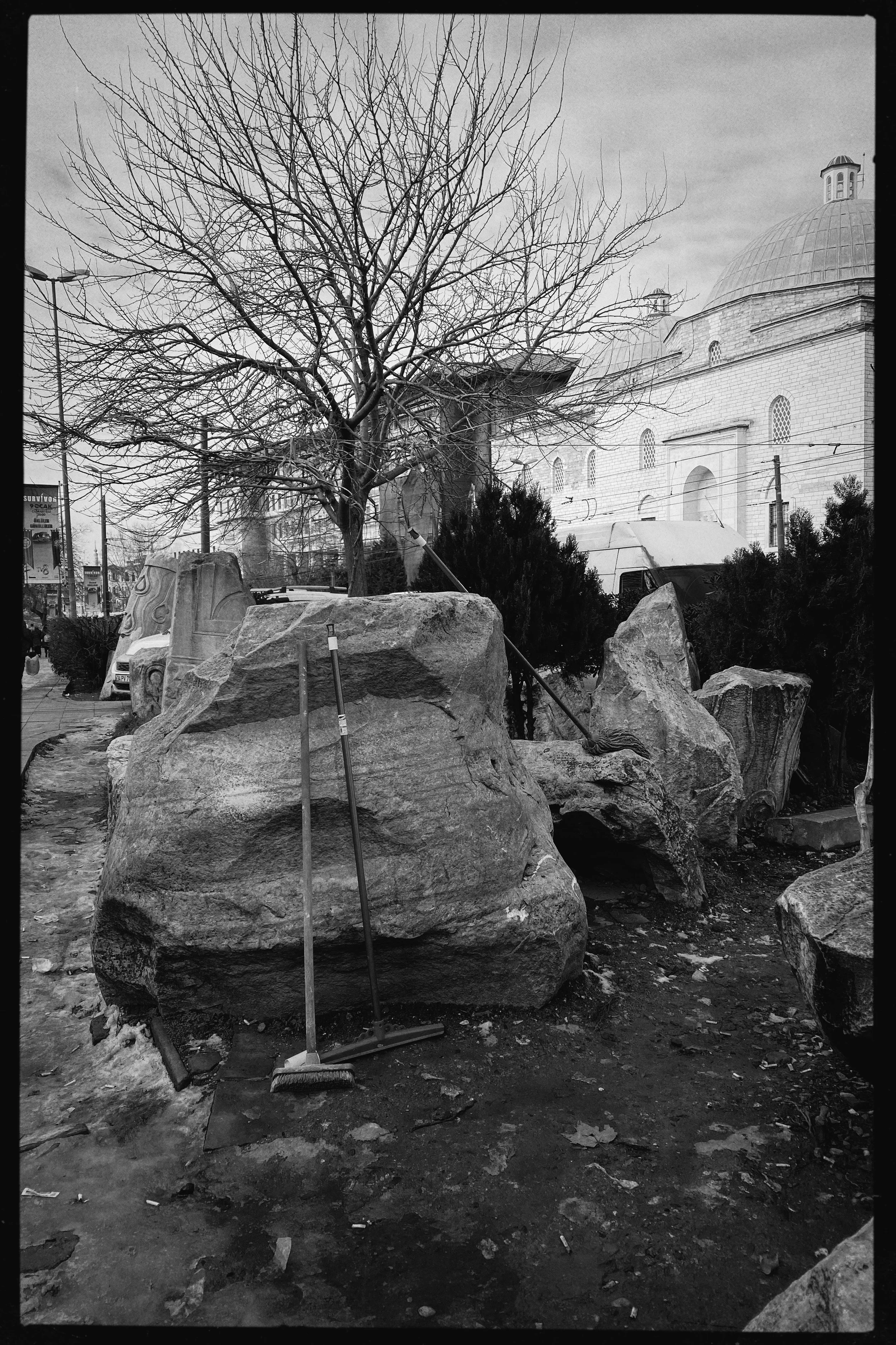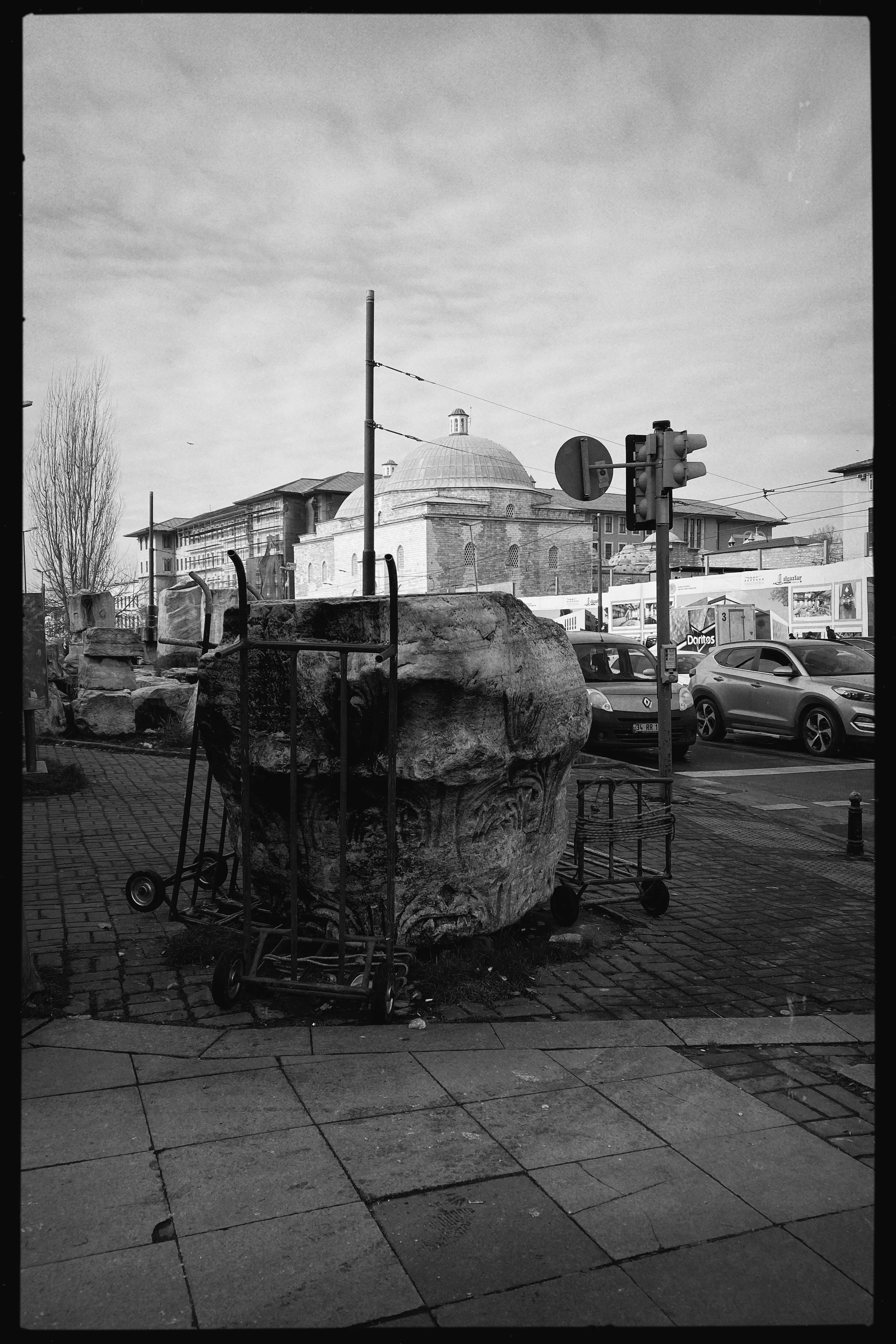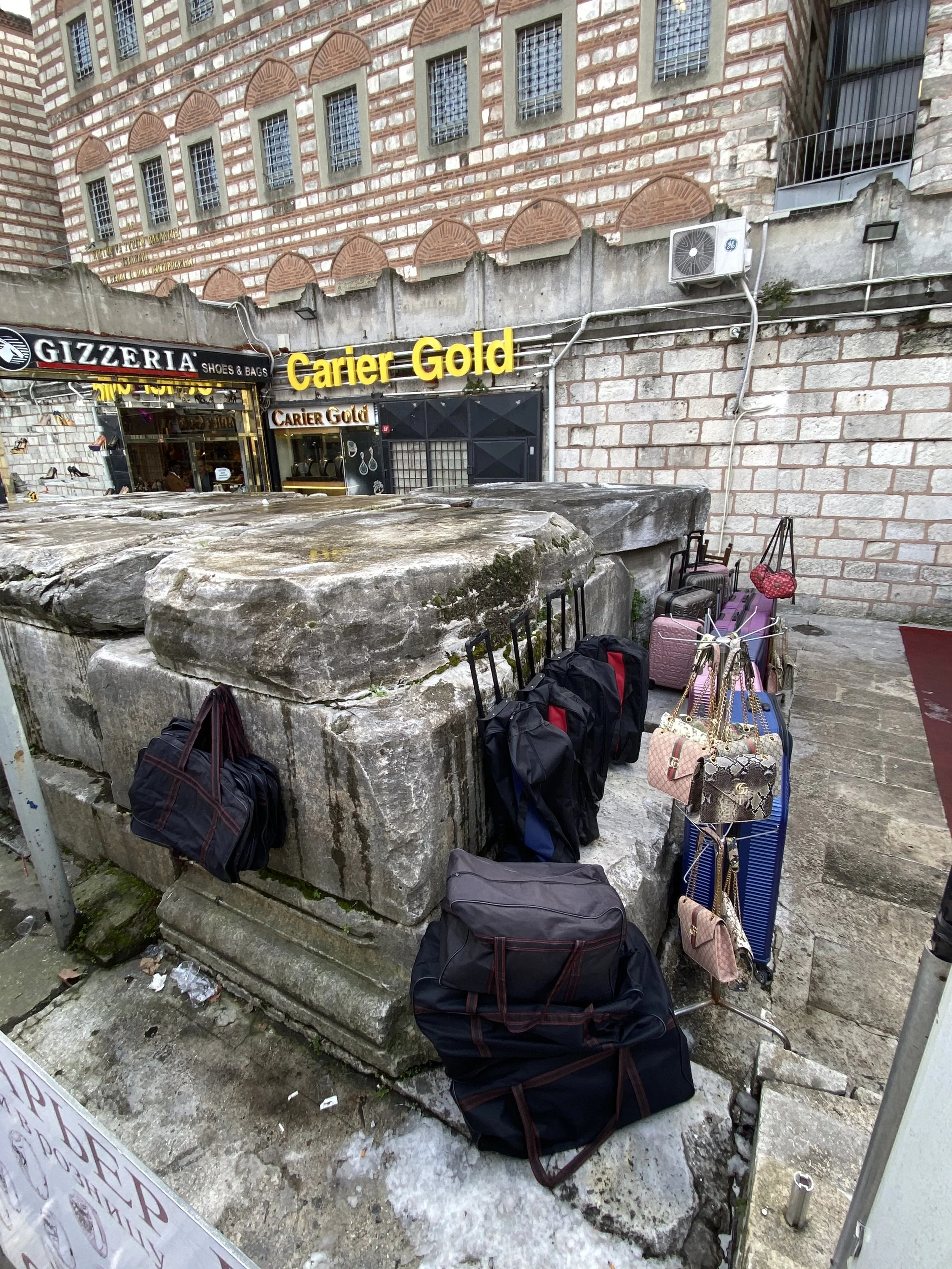 I looked around – trying to imagine what the pillars would have looked like as a passageway… Thinking of the location of these stones says a lot about these shifts of power in a turbulent past. Remembering what the Beyazıt square has gone through – political and ideological clashes, historical ruptures- one can easily retrace the way how all these shaped the social sphere along with the fate of these ruins. The temporality of power broken apart in fragments and integrated within the urban setting as the remnants of an unwanted past, that were coerced to become invisible. Today they rather remain as traces resistant to time yet unseen with our blindness.