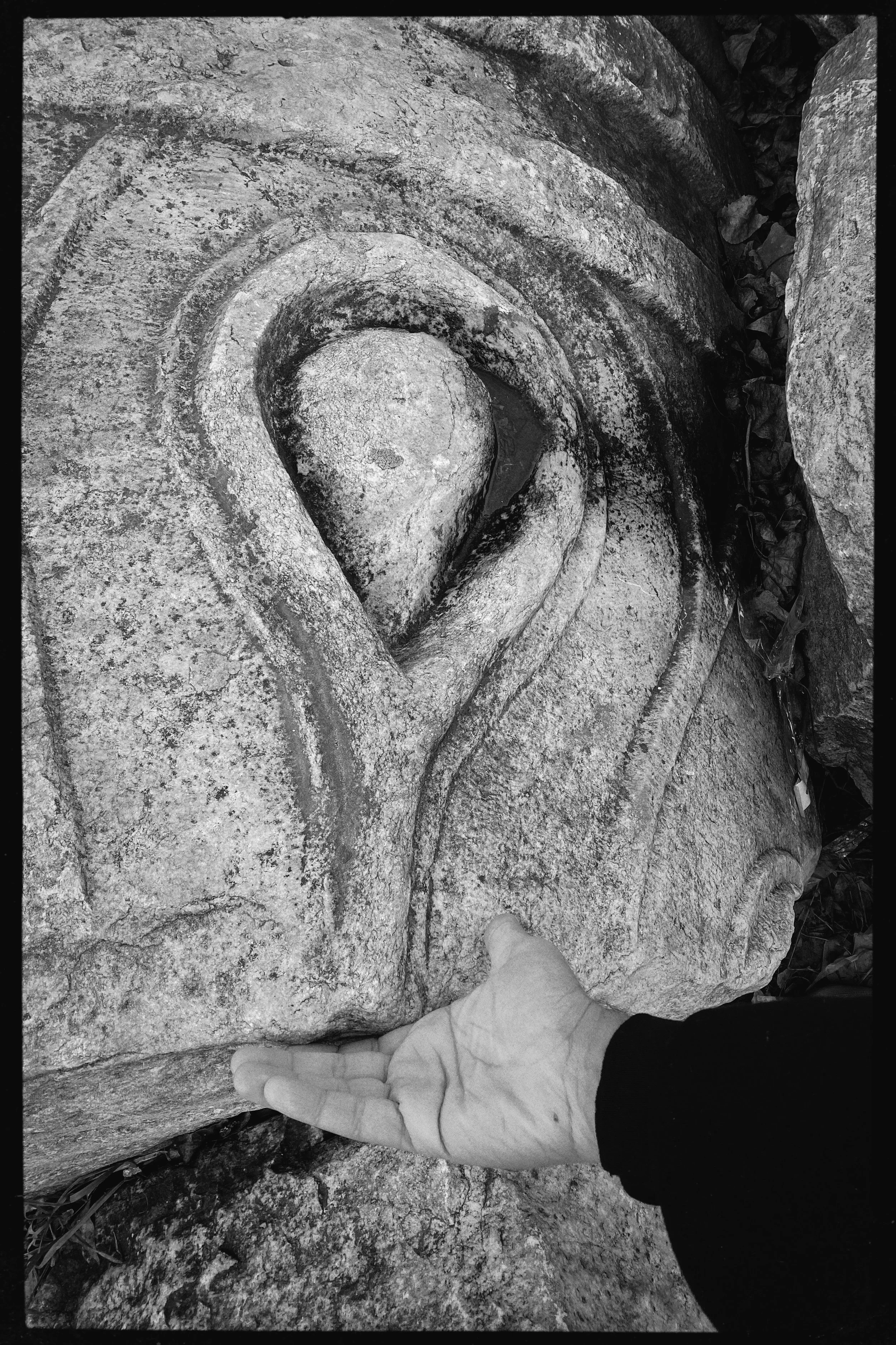 Gathering the ghostly traces of these layers in my palm – embedded within my fingerprints, whilst caressing the recollections of the stone that meet with mine – The memory of my hand